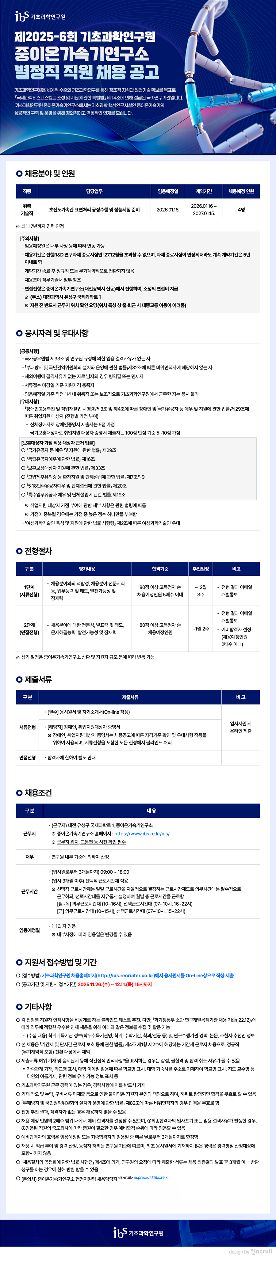 제2025-6차 기초과학연구원 중이온가속기연구소 별정직 채용